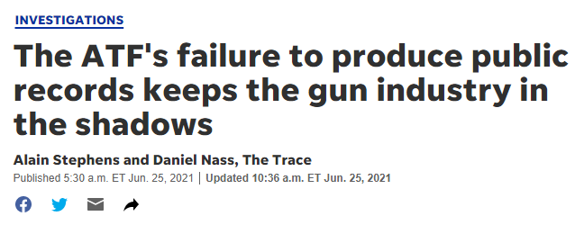 Last week, USA TODAY published a story titled: “The ATF's failure to produce public records keeps the gun industry in the shadows.”