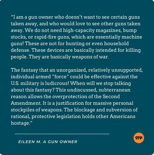 97Percent claims popular semi-automatic firearms are “weapons of war.”