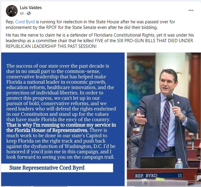 A longtime Florida Carry member tried to talk some sense into Valdes Wednesday, but he wouldn’t hear of it and doubled down on the comments he made is his post. As someone who spent 20 years as an investigative reporter, I understand Valdes wants to generate buzz and possibly a headline, and he’s not the first to go after a well-known member of the gun community in the hopes it will create even more of a splash, but we have a hard enough time gaining friends in Tallahassee. Badmouthing our allies and holding them up for ridicule is naïve and counterproductive. While I am all-in on holding public officials accountable, you have to go after the right public officials. Let’s start with those who are anti-gun.