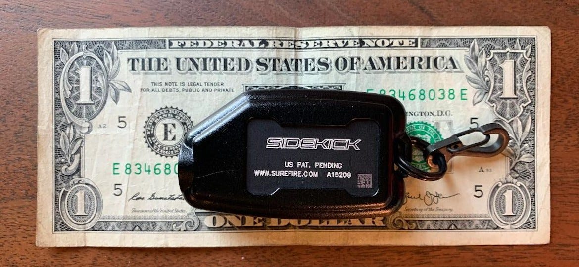 I’ve been a fan of Surefire products for a long time — decades, in fact. And as an ex-cop, I’m still somewhat addicted to high-quality white lights — too many midnight shifts will do that to you. So, when I saw that Surefire had a 300-lumen flashlight that was about as big as a Zippo lighter, known as the Sidekick, I had to have one.