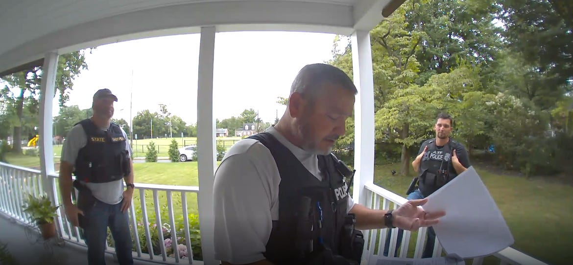 He asked the men for identification, which the agents and trooper produced. They admitted they did not have a search warrant. The doorbell camera recorded what happened next.